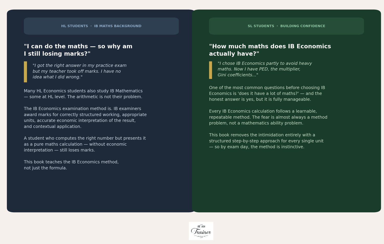 Very useful - for different reasons. The mathematics in IB Economics calculations is not demanding for someone doing IB Maths HL. What this book provides is the IB Economics method: how to structure working for IB Economics marking schemes, how to present units and working in the way examiners expect, and how to interpret results in economic terms. Many mathematically strong students lose marks on economics calculations precisely because they approach them as pure maths problems. This resource closes that gap.